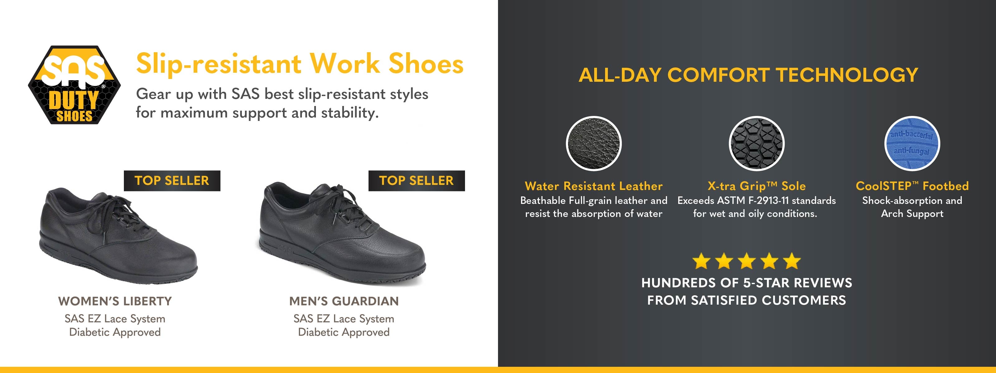 - Slip-resistant rubber outsole designed to help prevent slipping on floor surfaces. Their high-traction surface provides the grip you need to move with confidence throughout your shift, even when you encounter fluids or unexpected spills.